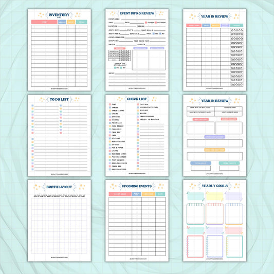 Craft fair market planner for vendor bundle of 9 pages digital download business goals crochet guide