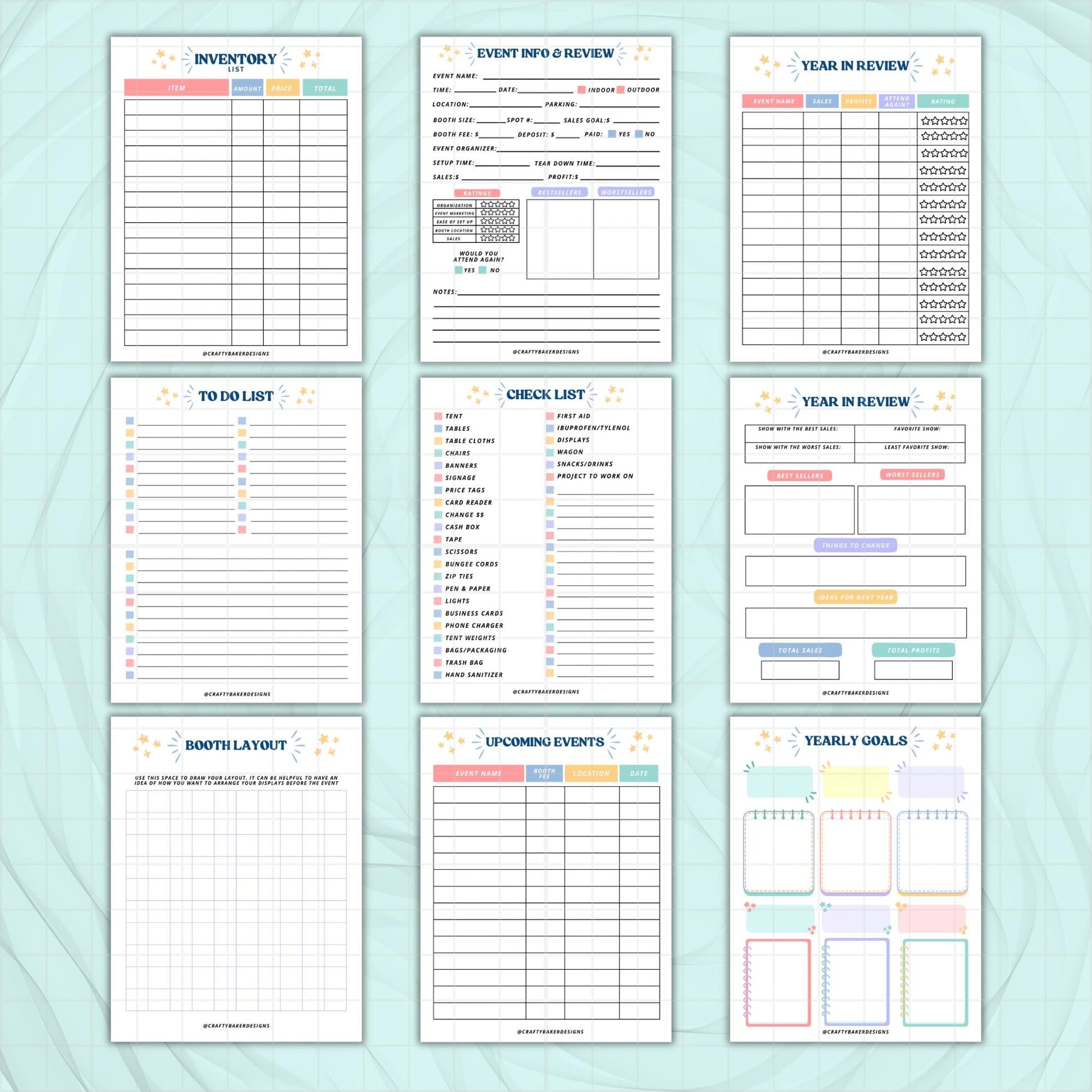 Craft fair market planner for vendor bundle of 9 pages digital download business goals crochet guide