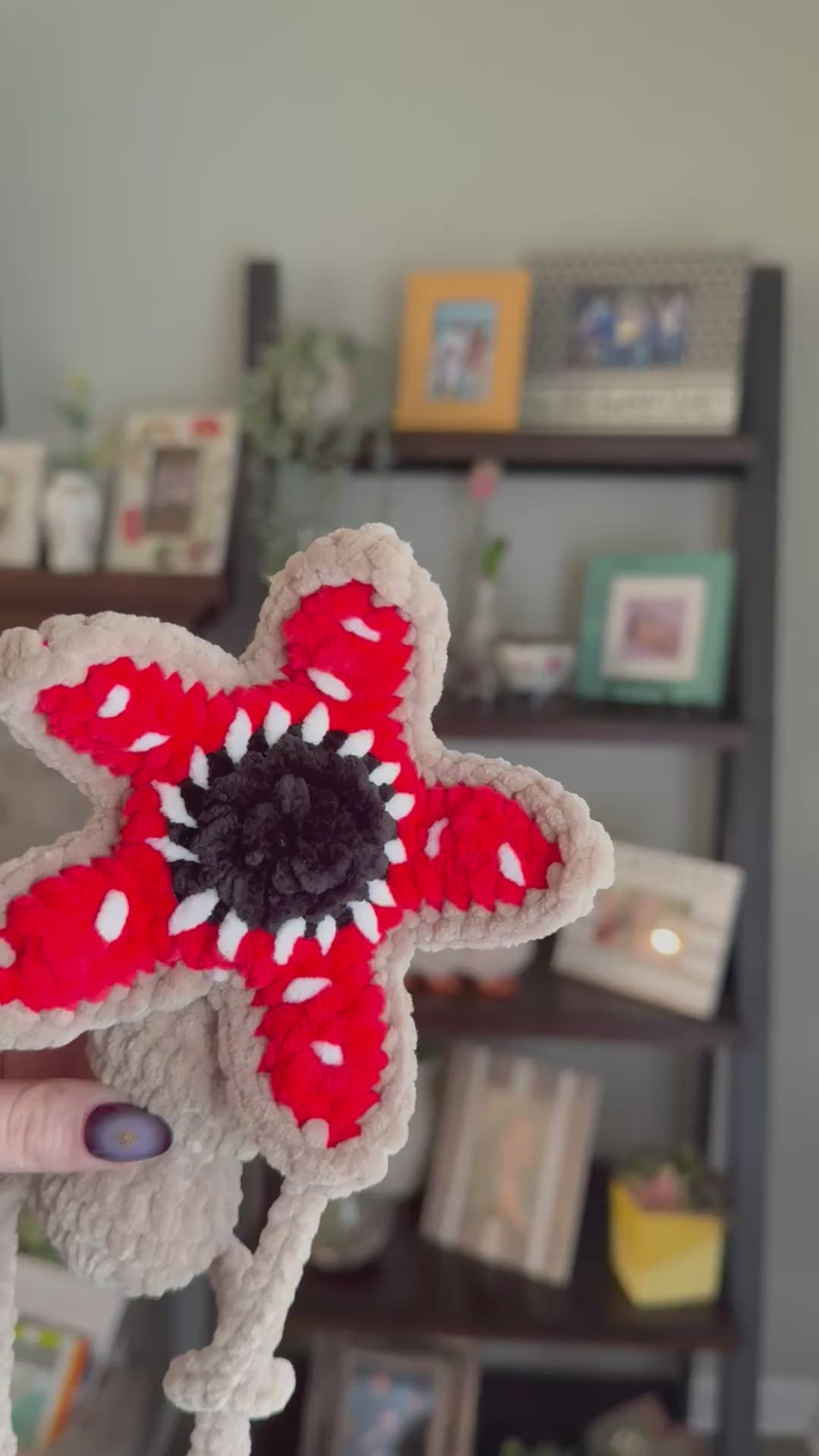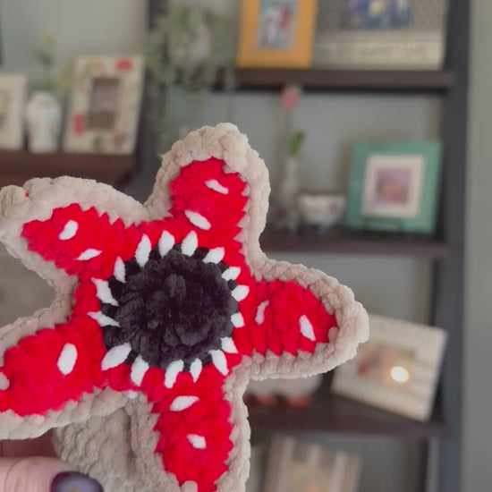 Handmade crochet demogorgon amigurumi. Made with soft chenille yarn. Perfect for fans of stranger things.