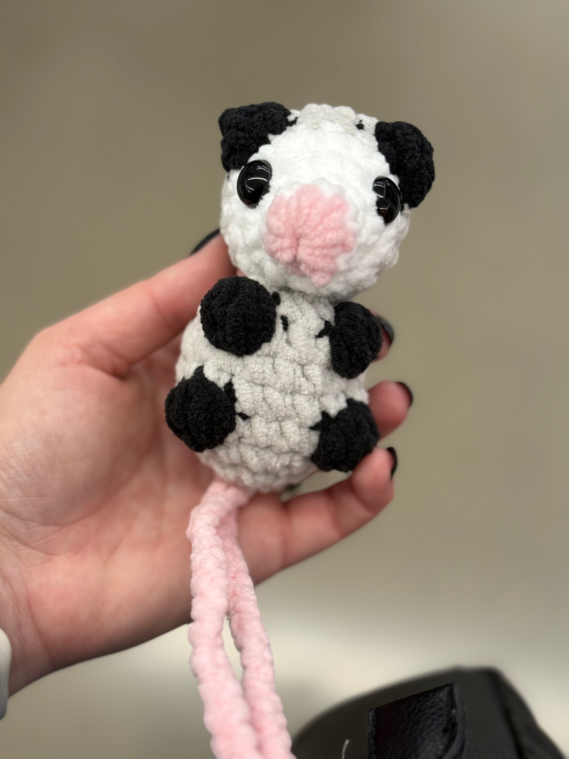Small crochet hanging possum that’s perfect for hanging in your car or attaching to a bag or a belt loop! Everyone will love this cute little guy!